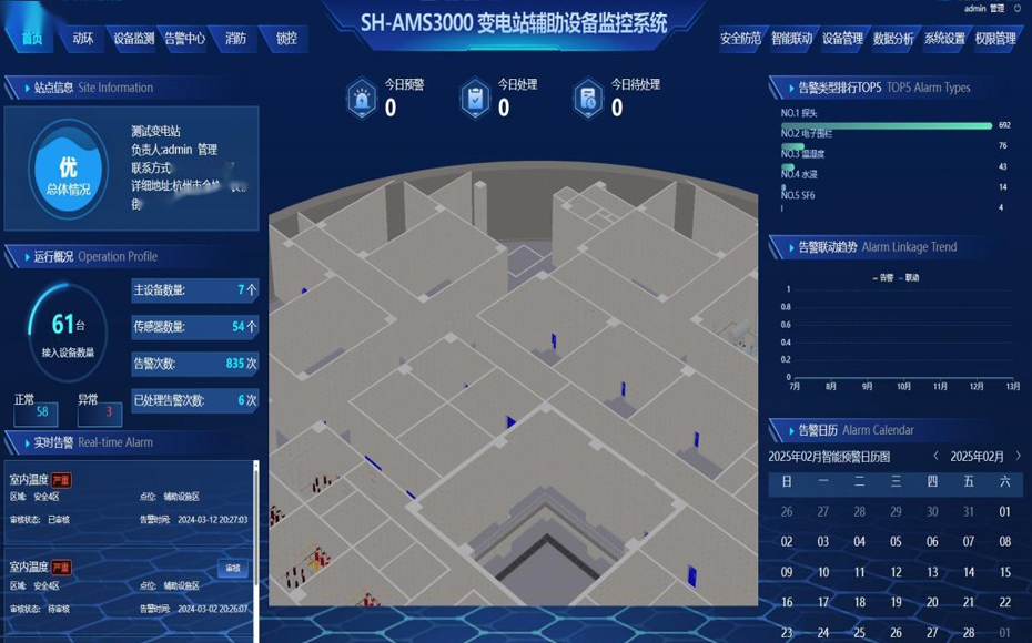 變電站輔助設備監控系統提供全面的站點管理和監控工具,幫助操作人員及時發現問題、做出決策、規劃維護活動,并提高變電站的運營效率、設備可靠性和電網穩定性。通過實時數據和歷史分析,幫助管理人員提供輔助決策。