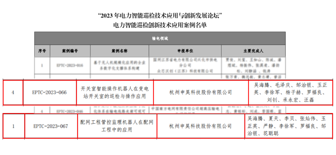 近日,在“2023年電力智能巡檢技術應用與創(chuàng)新發(fā)展論壇”上公布了2023年度電力智能巡檢技術應用案例遴選結果,其中杭州申昊科技股份有限公司斬獲卓越技術應用案例1項和創(chuàng)新技術應用案例2項。